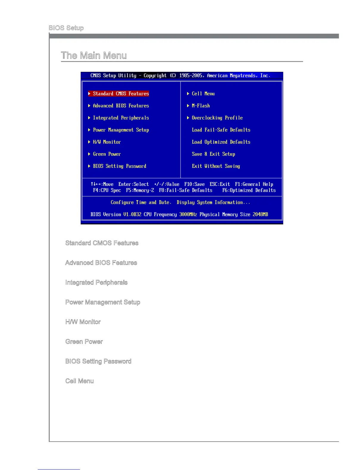 Use ths menu to setup the tems of the BIOS specal enhanced features.
