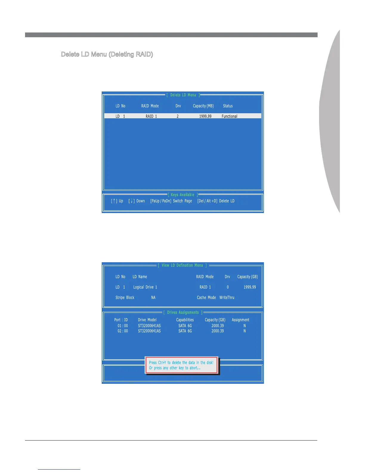 Choose a LD No. you want to delete and press [Del] or [Alt+D] delete the RAID