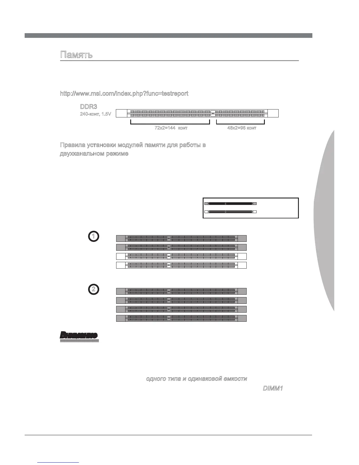 Чтобы система загрузилась, вначале установите модули в разъем DIMM1.