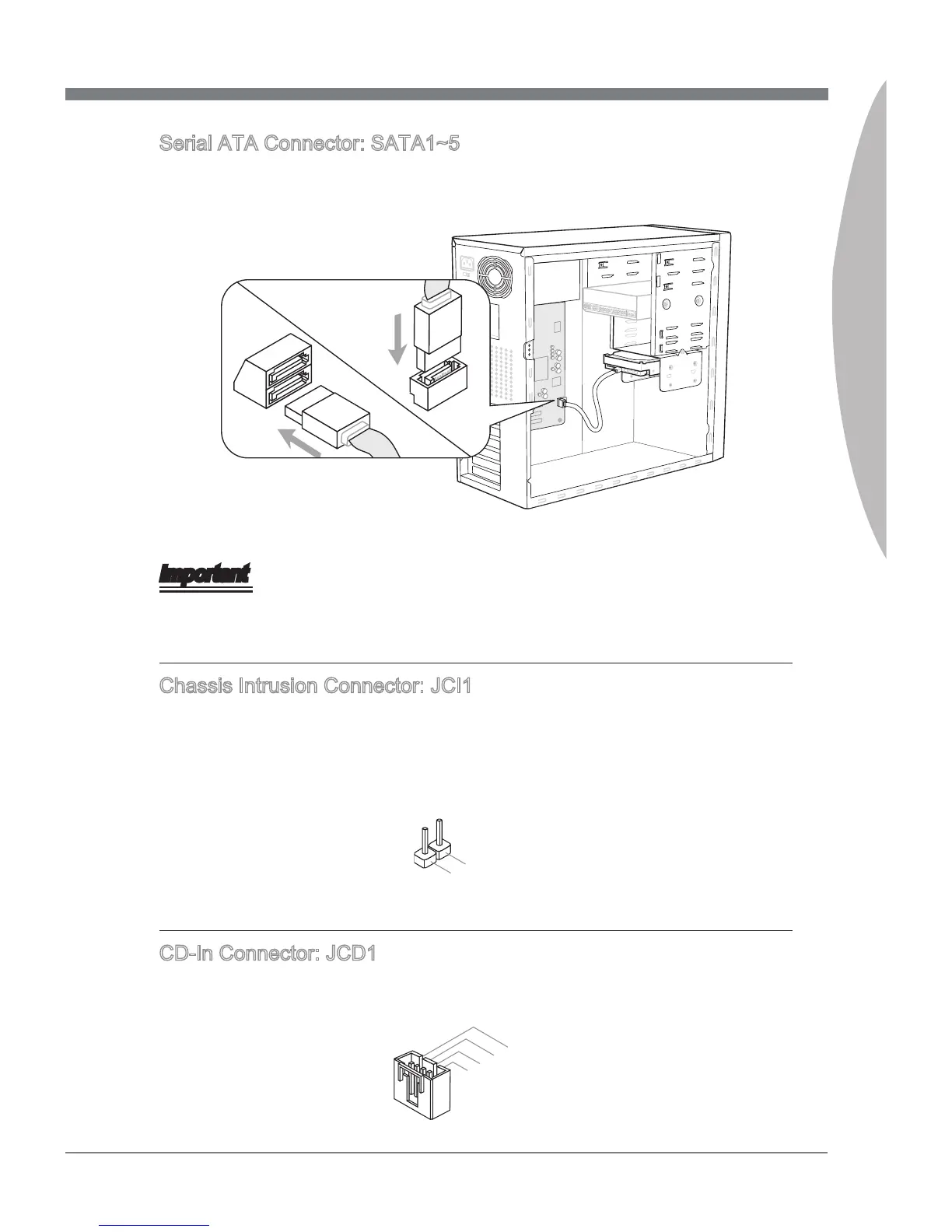 This connector connects to the chassis intrusion switch cable. If the chassis is opened,