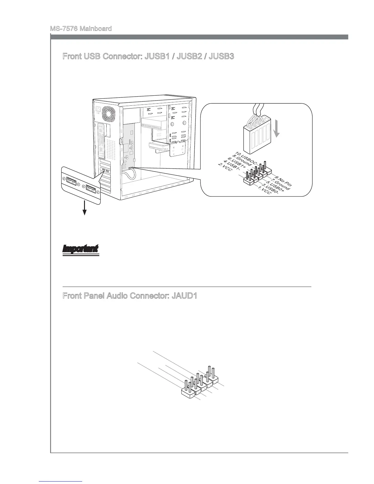 Front USB Connector: JUSB1 / JUSB2 / JUSB3