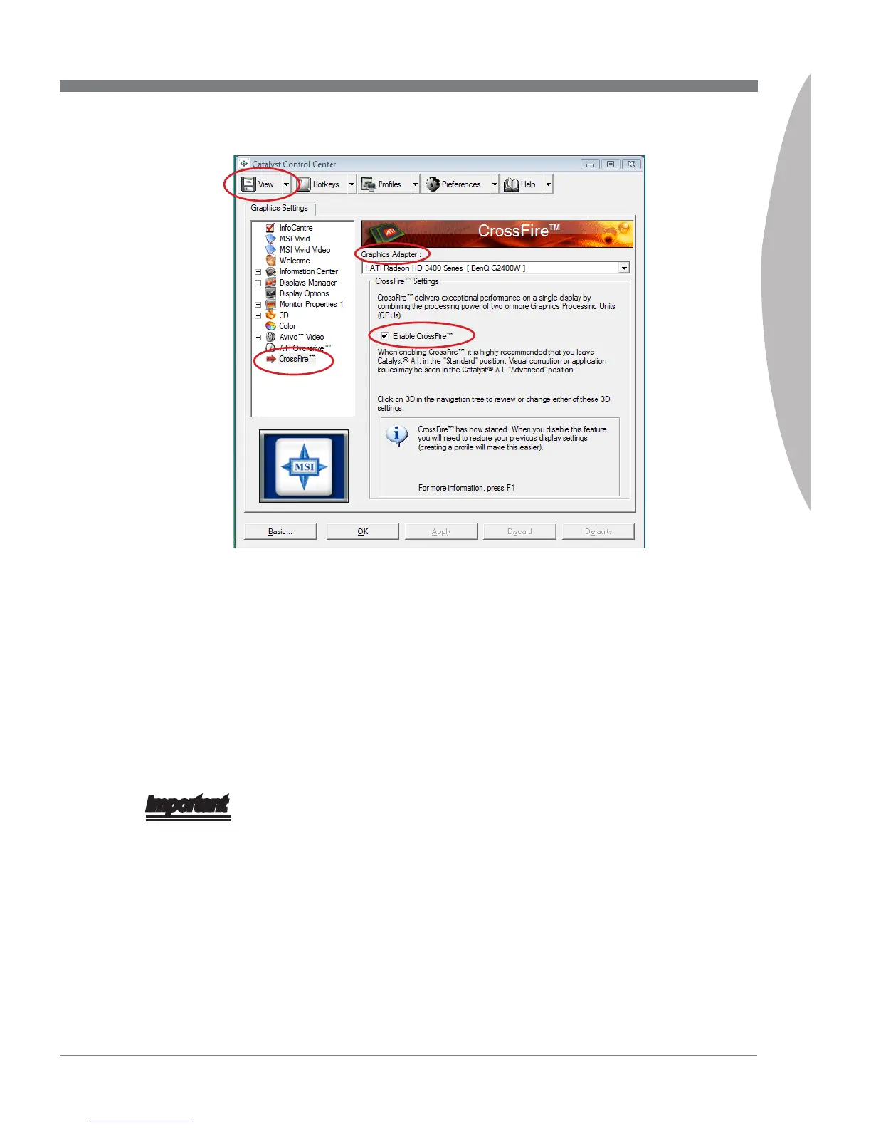 From the “Graphics Settings” tree in the Catalyst Control Center, click Cross-