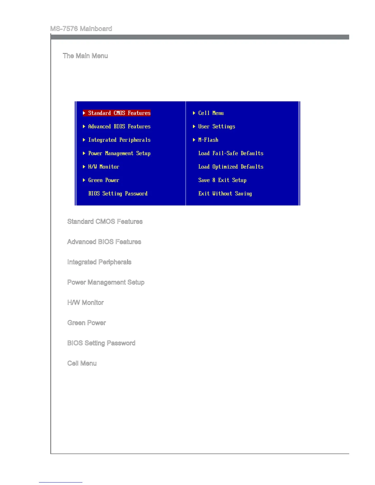 Once you enter BIOS CMOS Setup Utility, the Main Menu will appear on the screen.