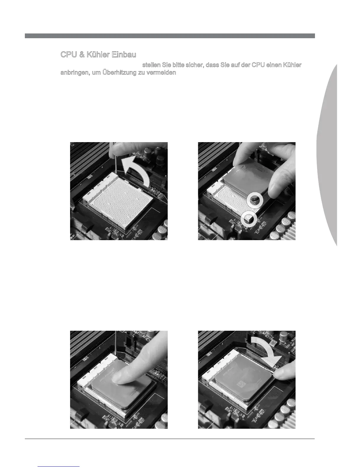 Wenn Sie die CPU einbauen, stellen Sie bitte sicher, dass Sie auf der CPU einen Kühler