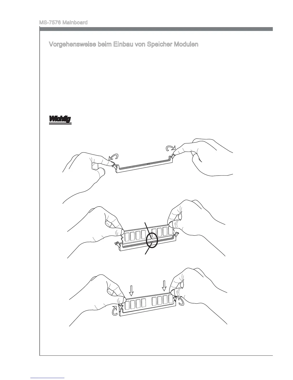 seite richtig tief in dem DIMM-Steckplatz sitzt. Der Kunststobügel an jedem Ende