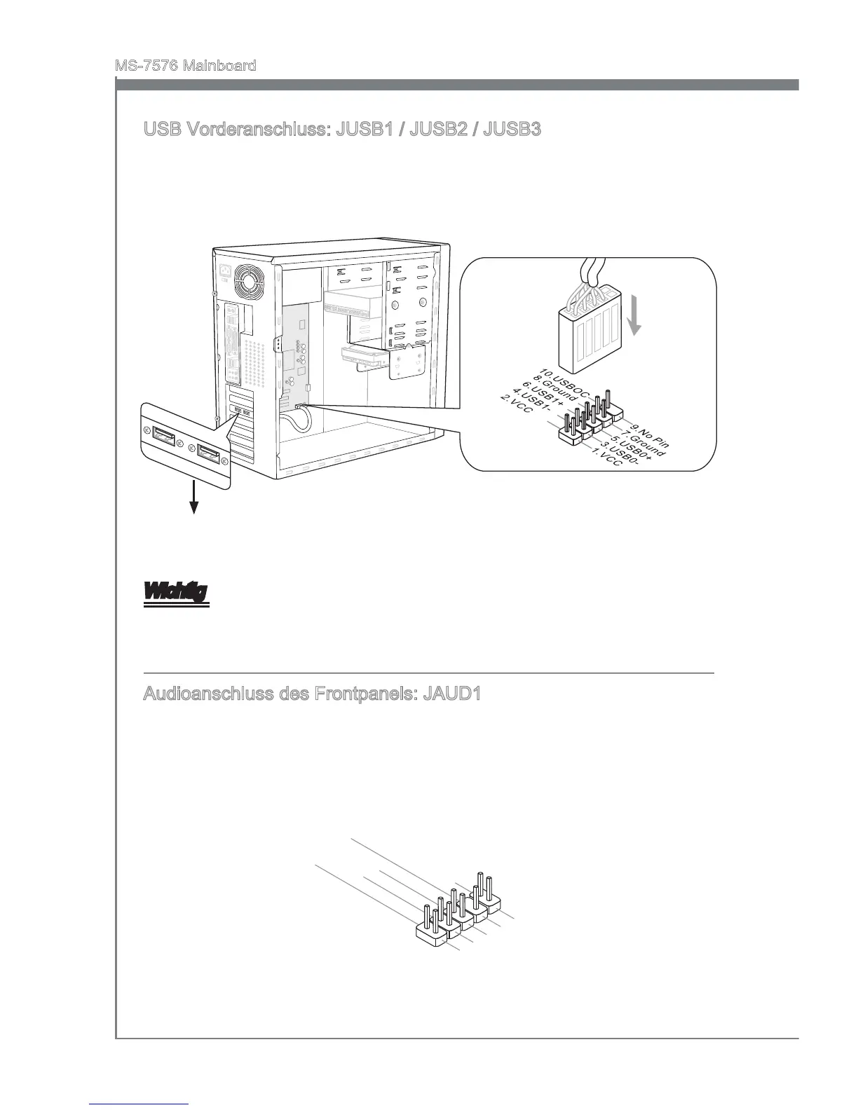 USB Vorderanschluss: JUSB1 / JUSB2 / JUSB3