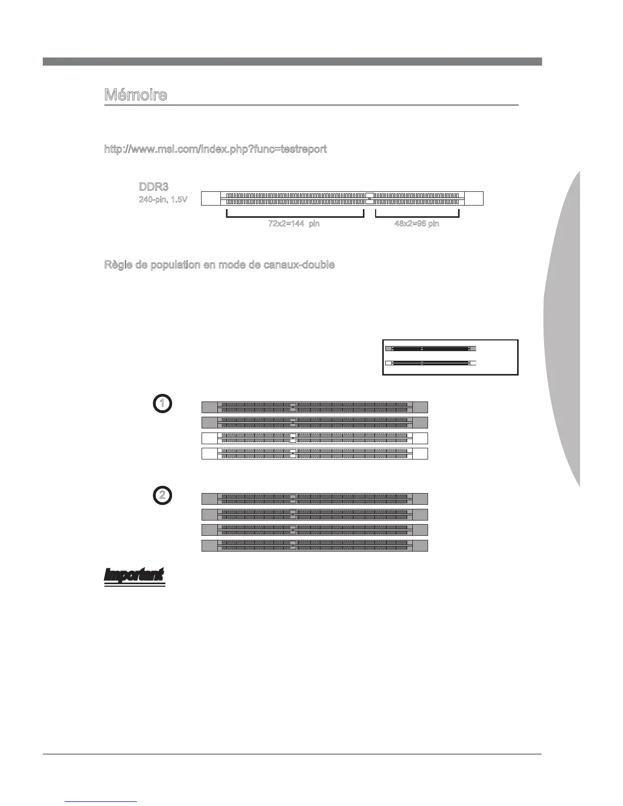 mode de canaux-double peut améliorer les performances du système. Veuillez vous