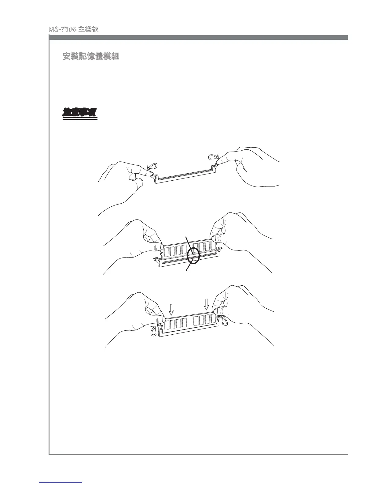 若已正確地將記憶體模組插入該插槽的話,應看不見金手指。