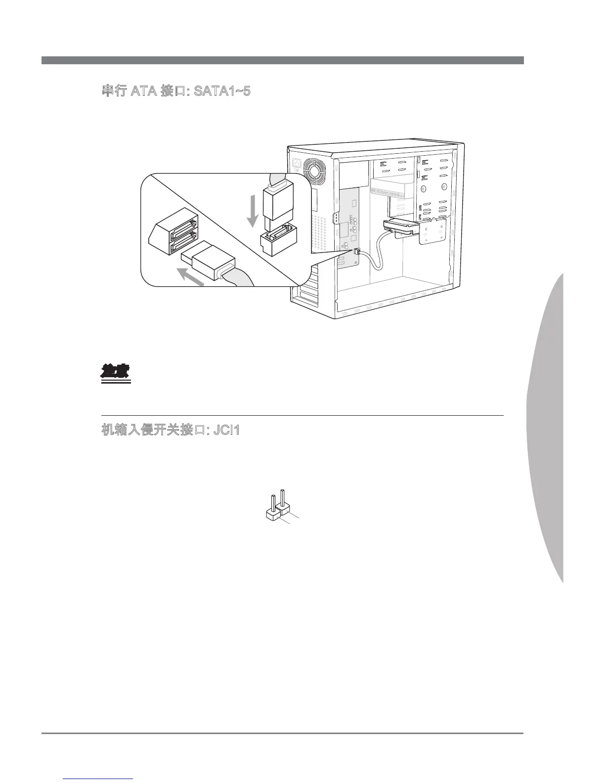 机箱入侵开关接口: JCI1