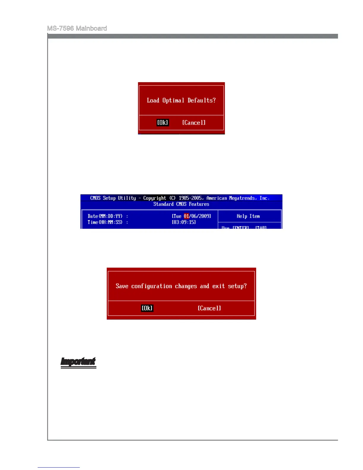Select [Ok] and press Enter to load the default settngs for optmal system perfor-