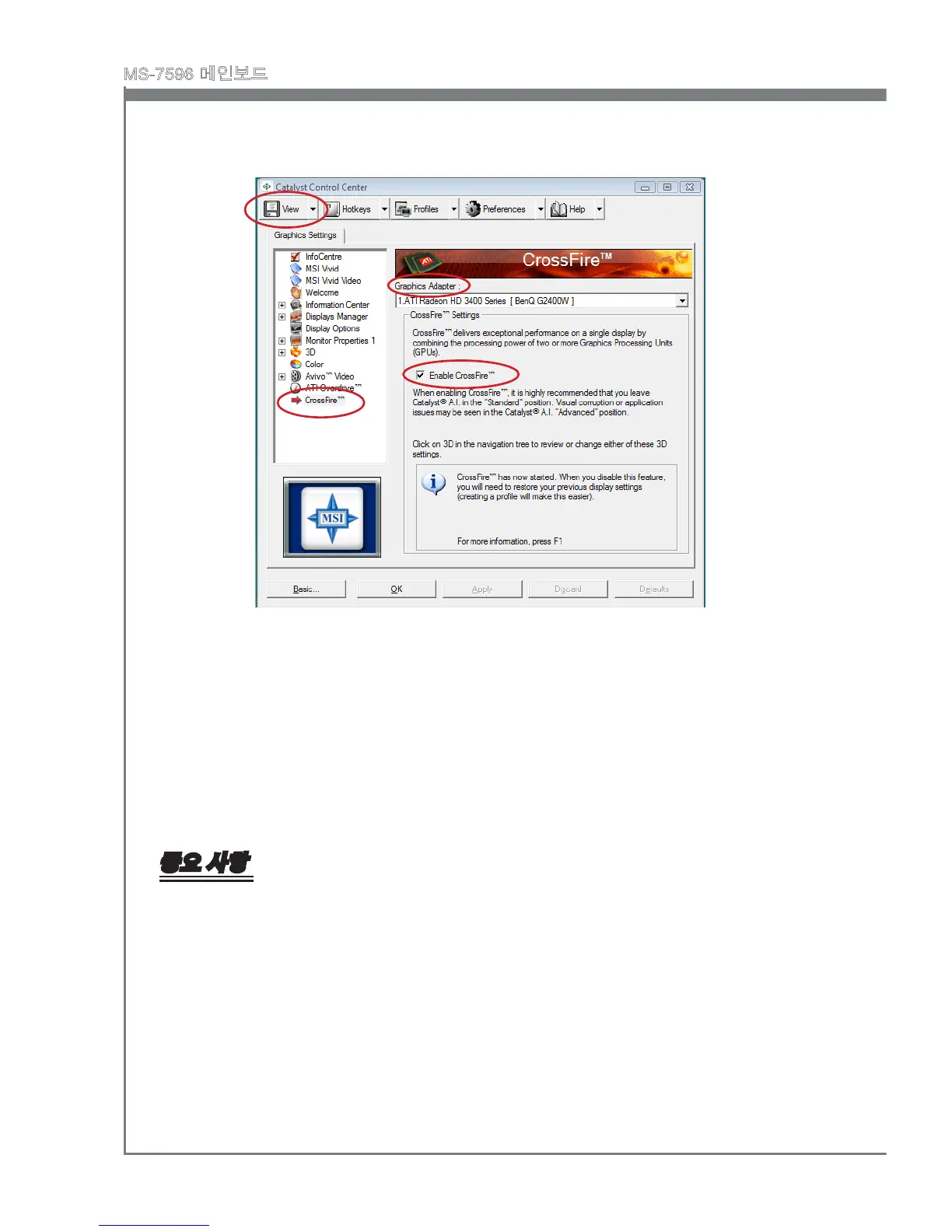 Catalyst Control Center의 "그래픽 설정" 트리에서 CrossFre™을 클릭합니다.