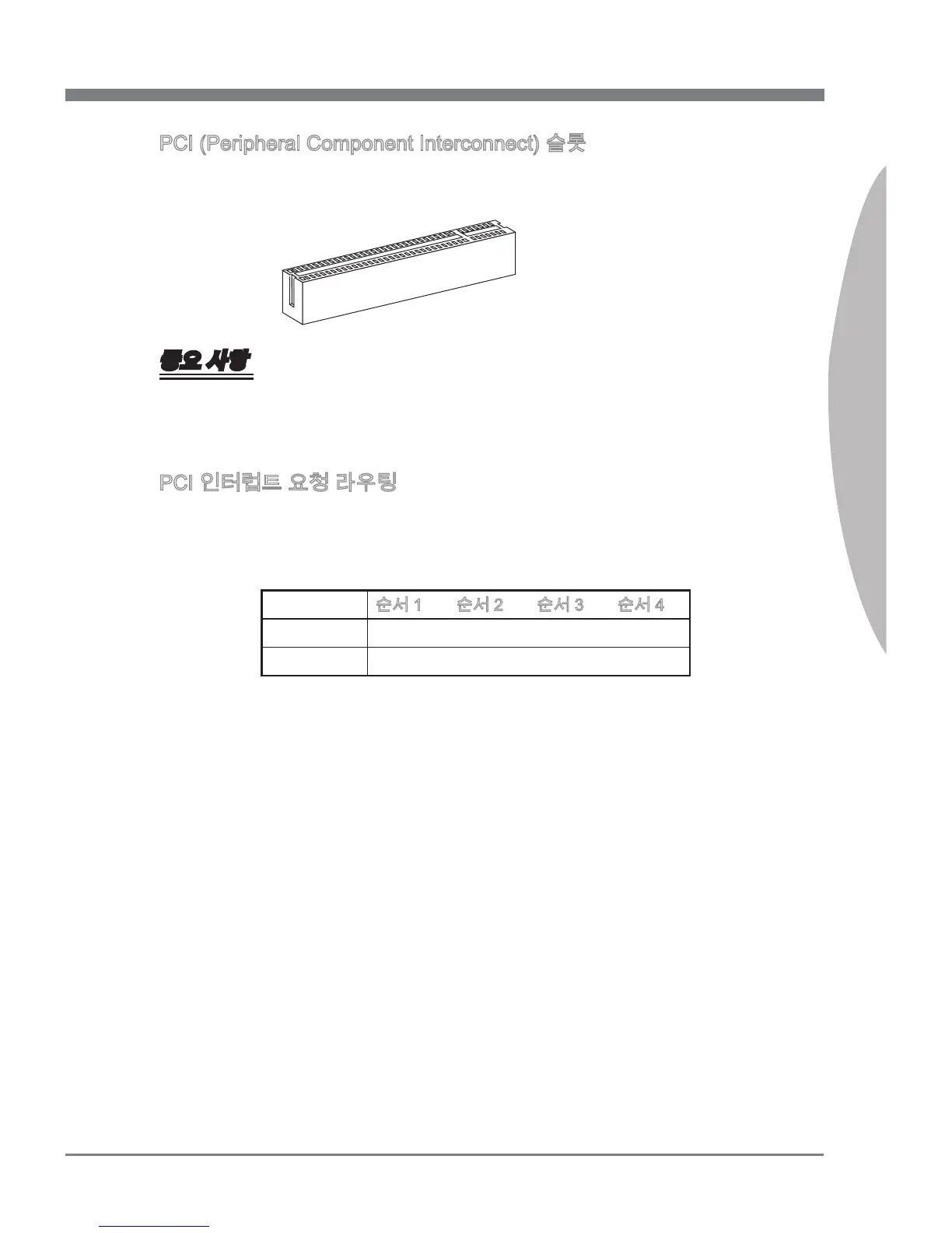 PCI 슬롯은 LAN 카드, SCSI 카드, USB 카드 및 PCI 규격을 준수하는 기타 애드온 카드