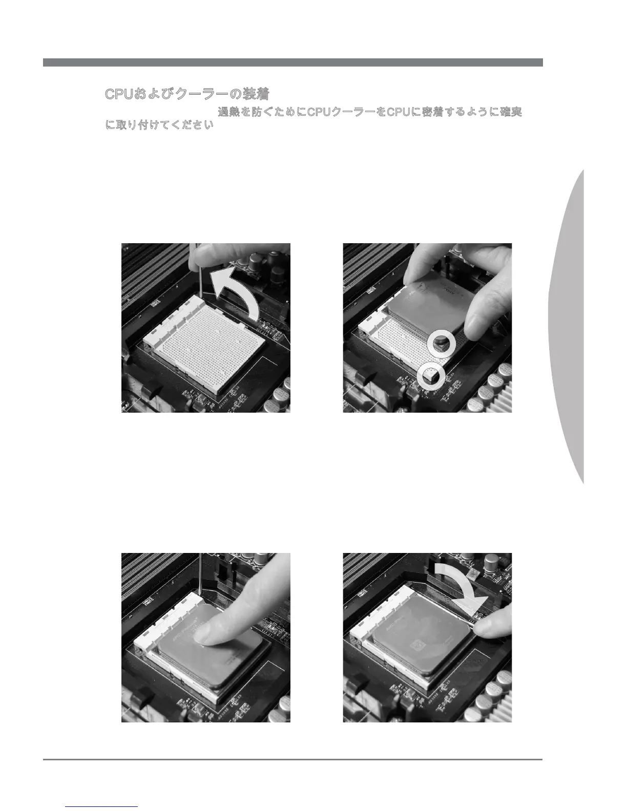 下記の手順に従って正しくCPUとCPUクーラーを装着してください。装着方法を誤る