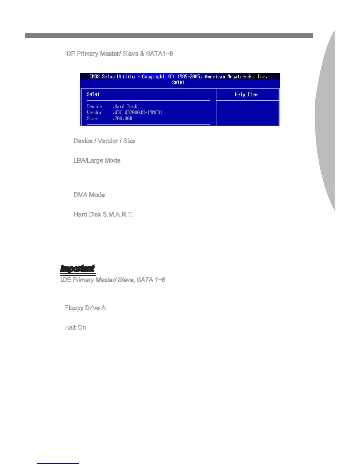 IDE Primary Master/ Slave, SATA 1~6 are appearing when you connect the HD devices