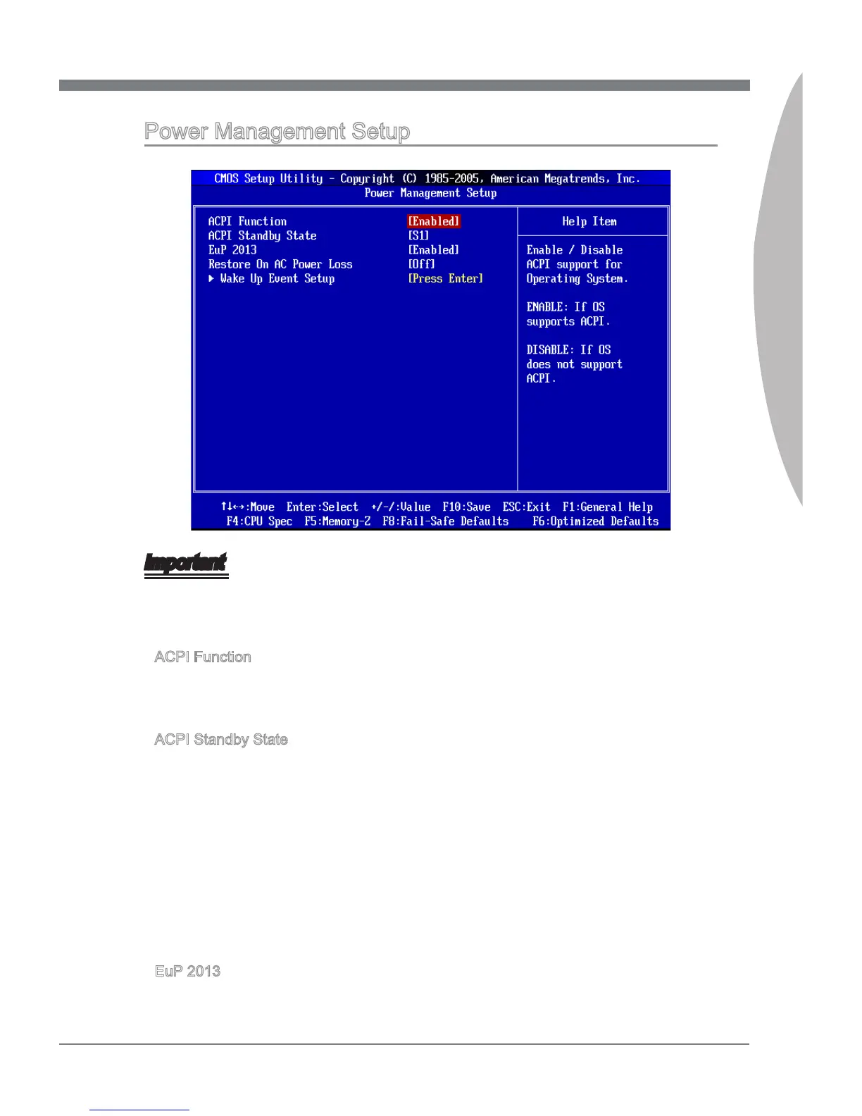 This item is to activate the ACPI (Advanced Conguration and Power Management