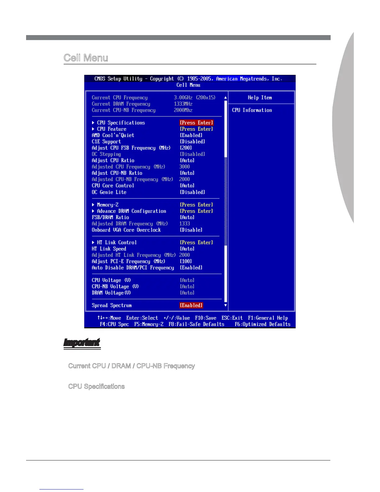 These items show the current clocks of CPU, Memory and CPU-NB speed. Read-only.