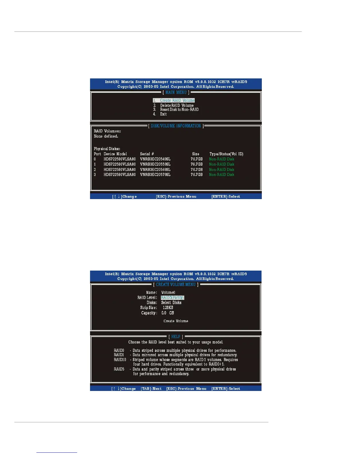 1. Select option 1 “Create RAID Volume” and press <Enter> key. The following
