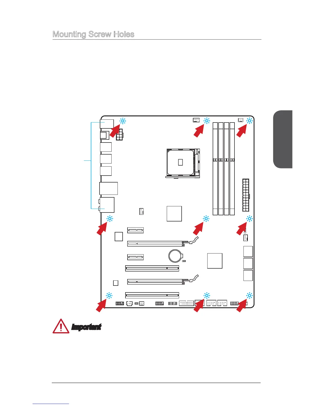 plate’s mounting stands with the screw holes on the motherboard and secure the