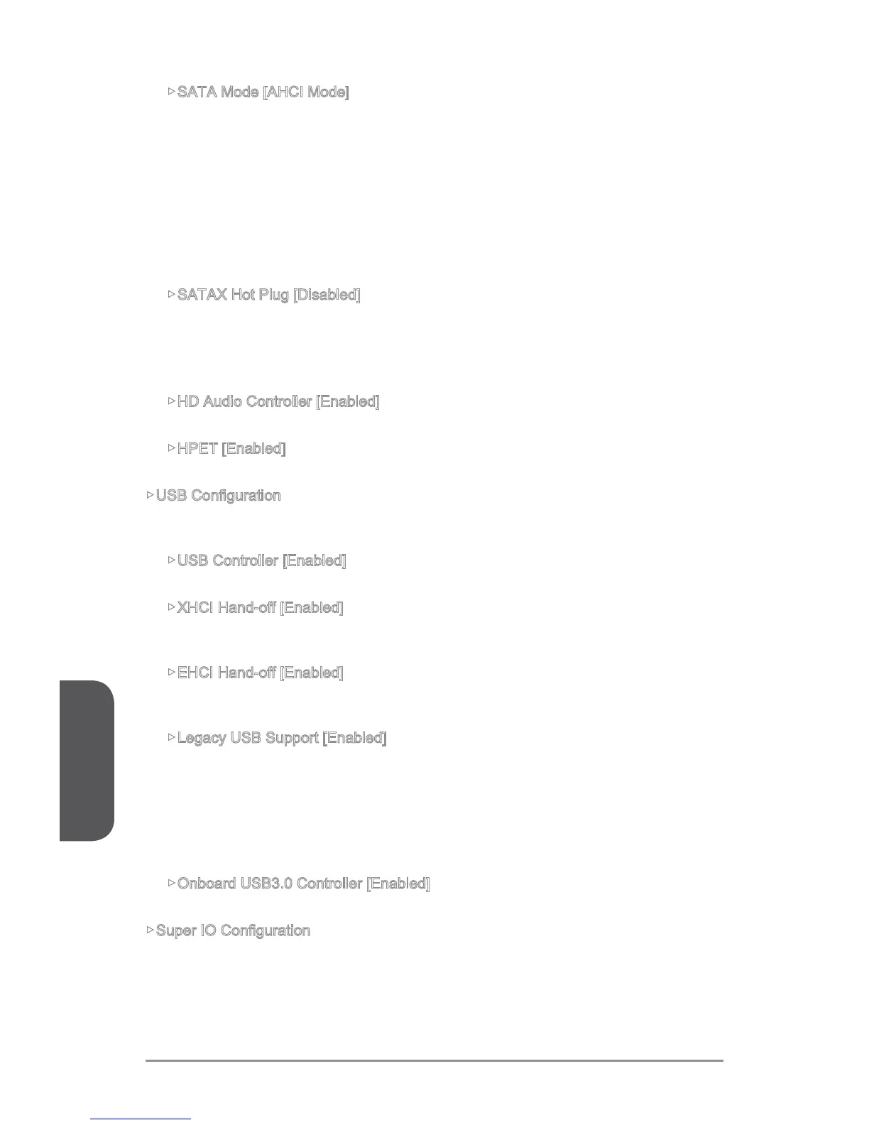[AHCI Mode] Specify the AHCI mode for SATA storage devices. AHCI (Advanced