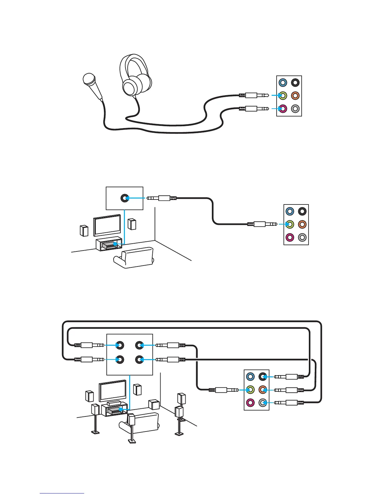 Audio jacks to 7.1-channel speakers diagram