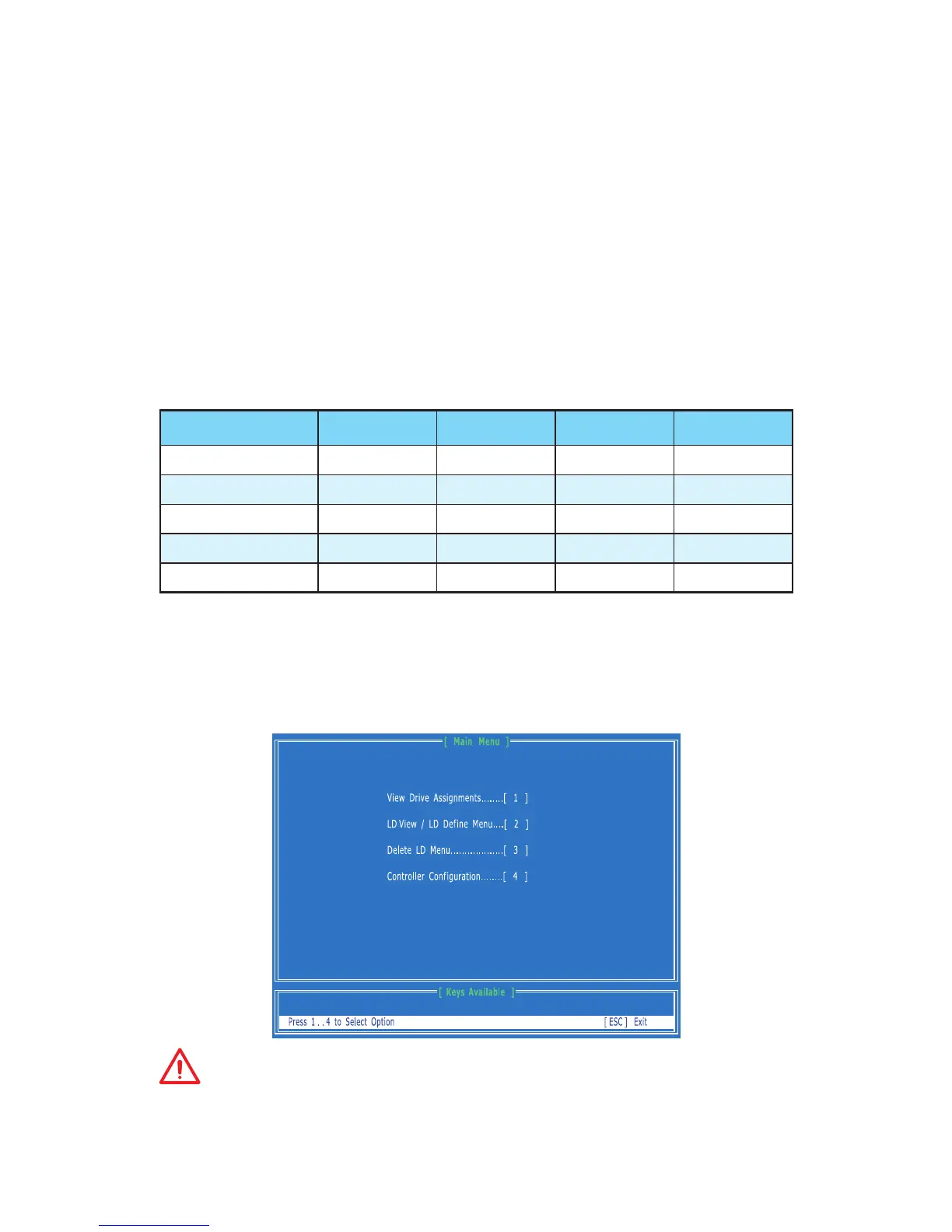 RAID Option ROM utility during the POST, the following window will appear.