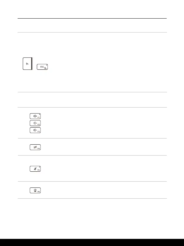 • F1: Mute the built-in speakers. The Mute LED indicator,