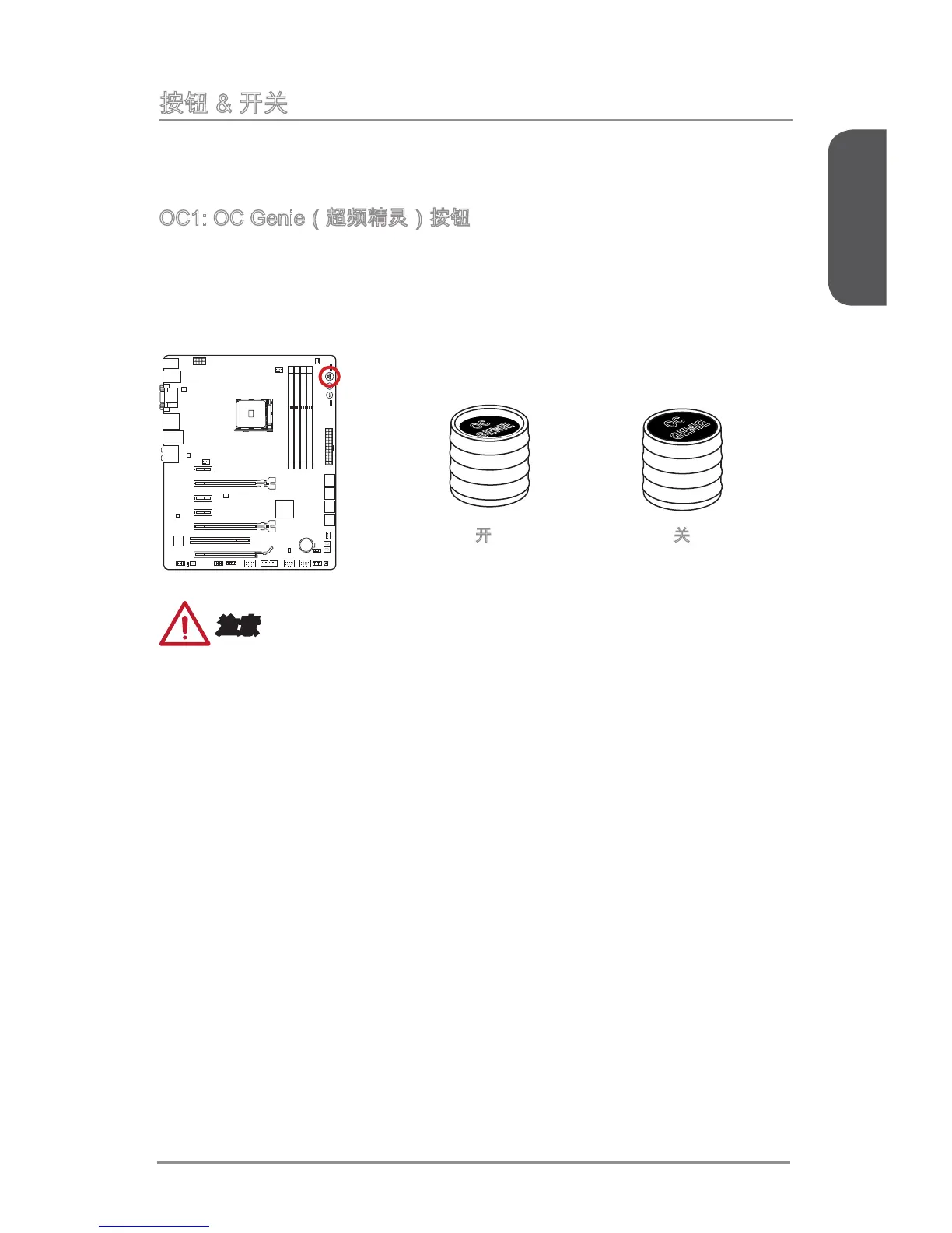 超频。想要关闭OC Genie功能,请在关机后,再次按下这个按钮就可以。这时,这个