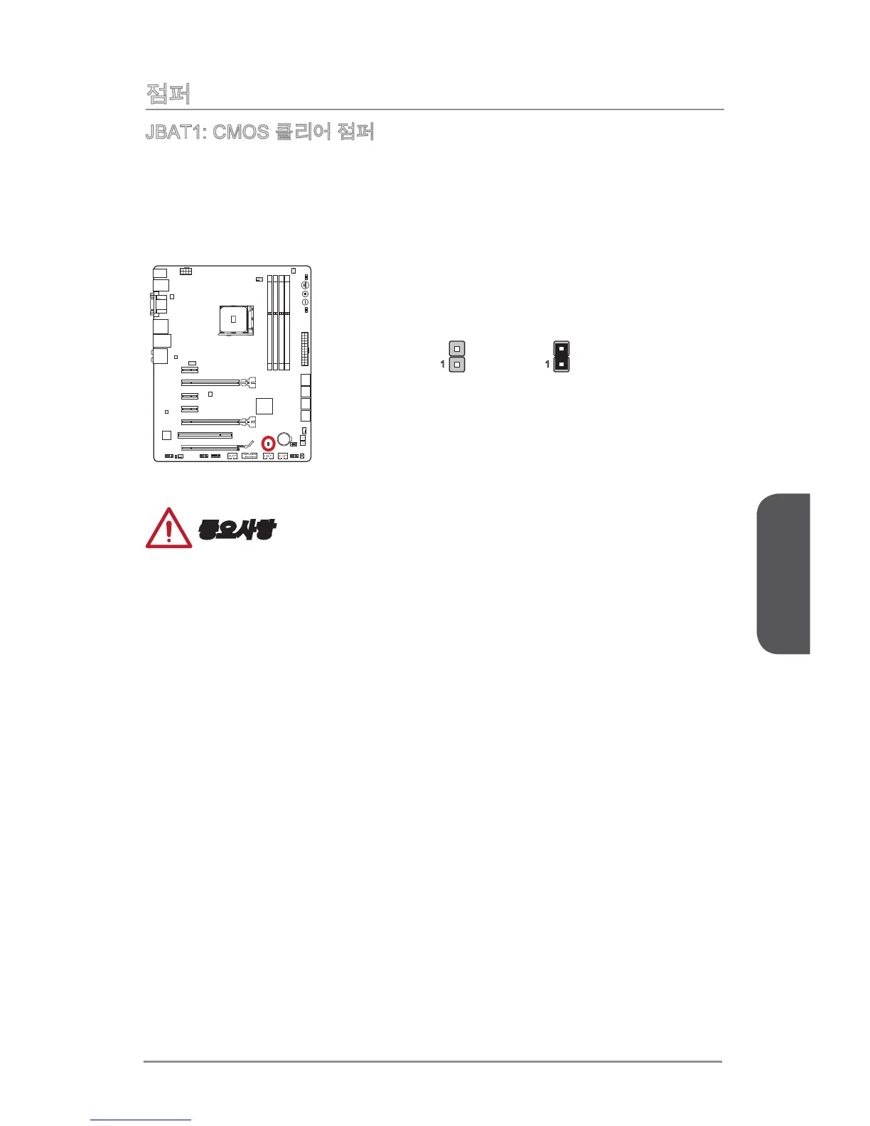 시스템이 꺼져 있을 때 점퍼를 단락시켜 CMOS RAM을 지울수 있습니다. 그 다음,점퍼