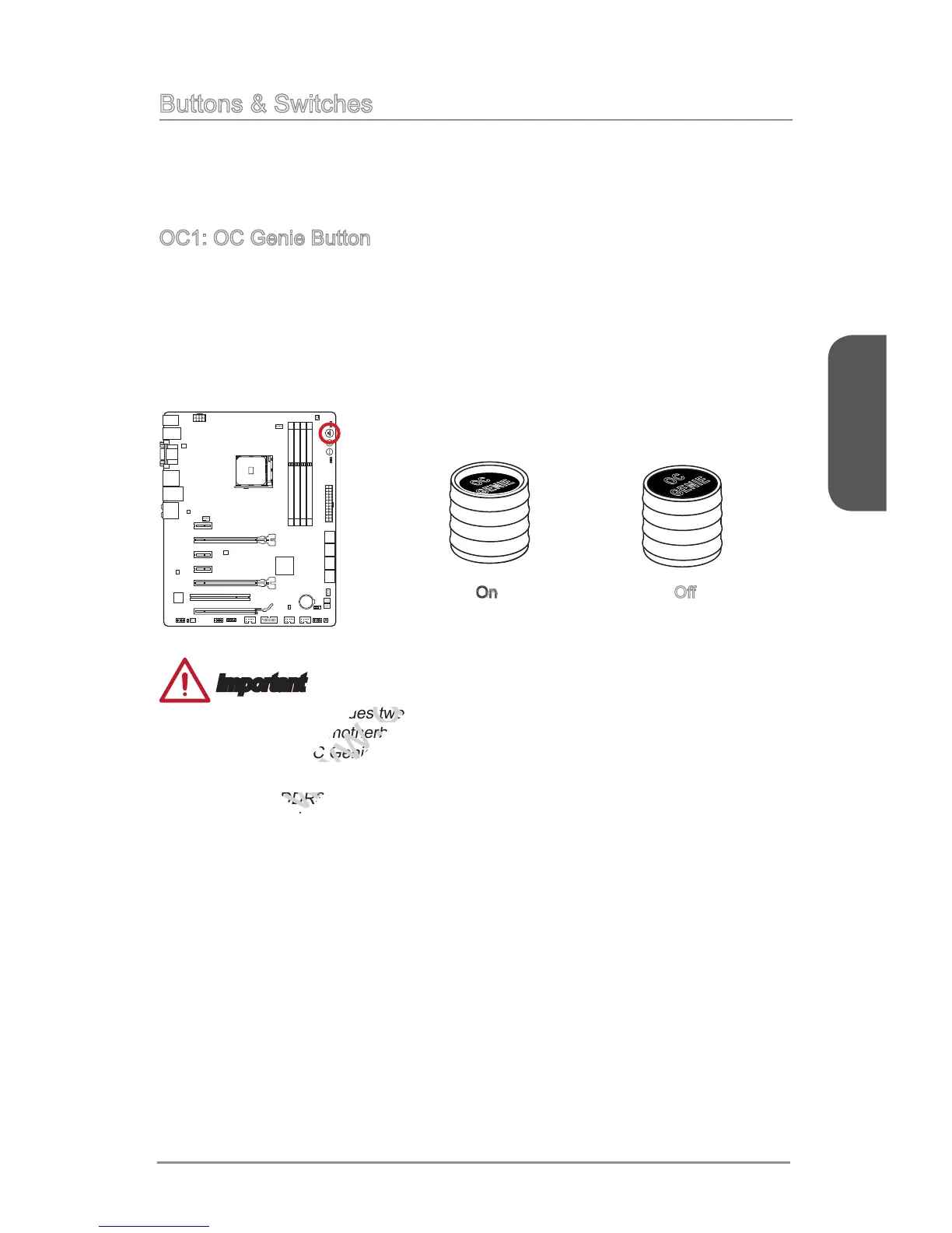 while the system is o to enable OC Genie. The button will lock remain depressed