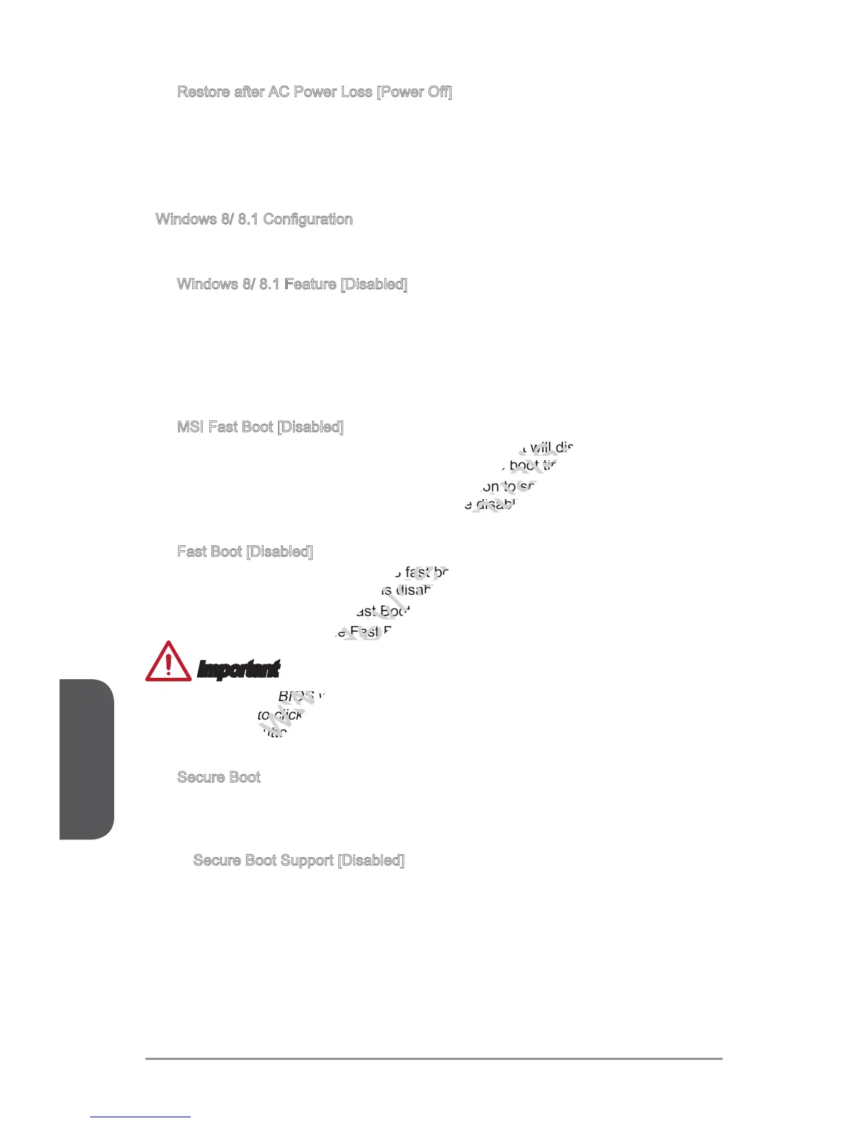 [Disabled] Disables MSI Fast Boot.