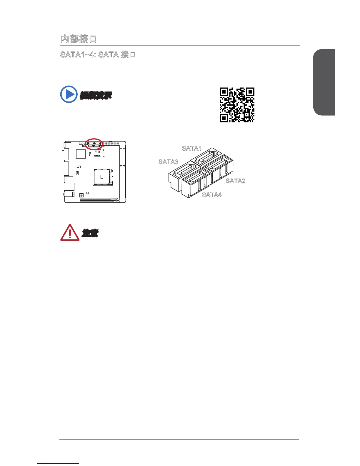 SATA 线的两端有相同的插口,然而,为了节省空间建议连接扁平接口端在主板上。