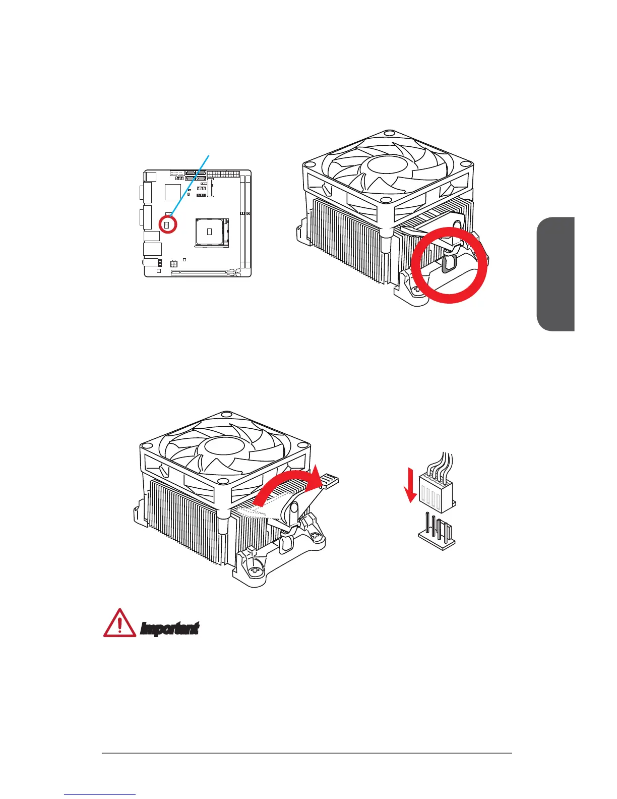 9. Attach the APU Fan cable to the APU fan connector on the motherboard.