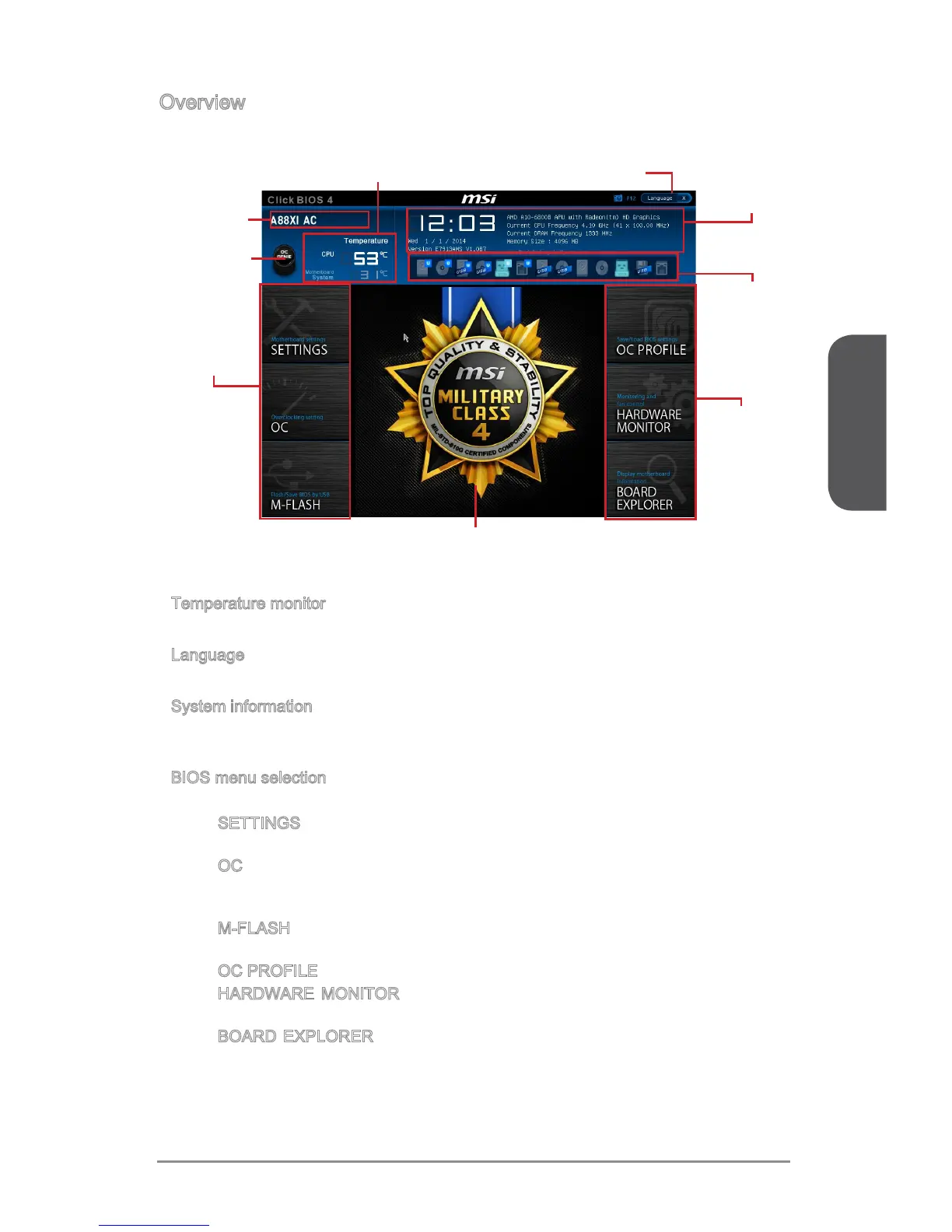 OC PROFILE -This menu is used to set various overclocking proles.