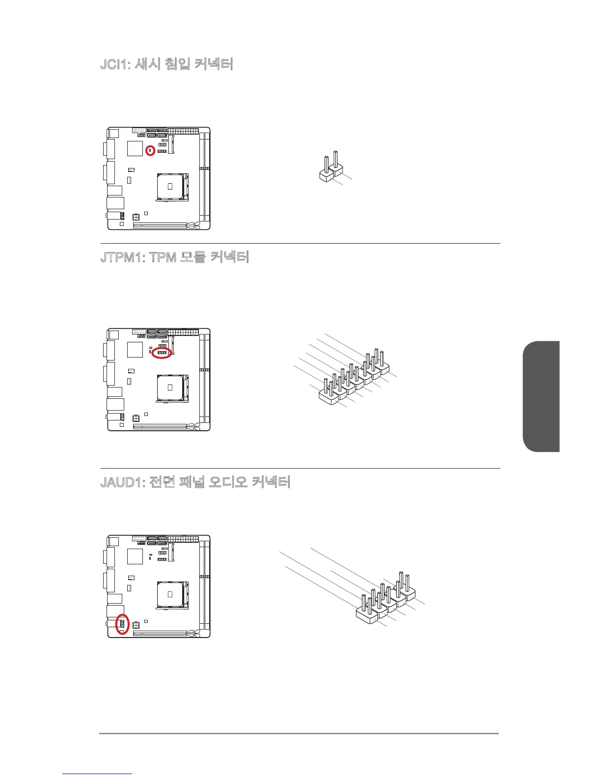 이 커넥터를 사용하여 컴퓨터 케이스에 있는 전면 오디오 패널을 연결할 수 있습니다.