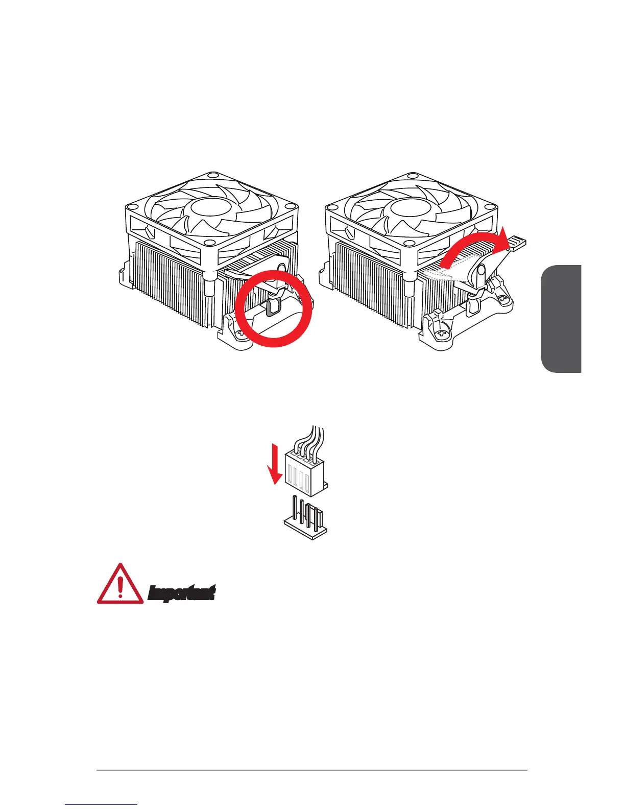 6. Posez le ventilateur sur le mécanisme de rétention. Crochez un côté du clip