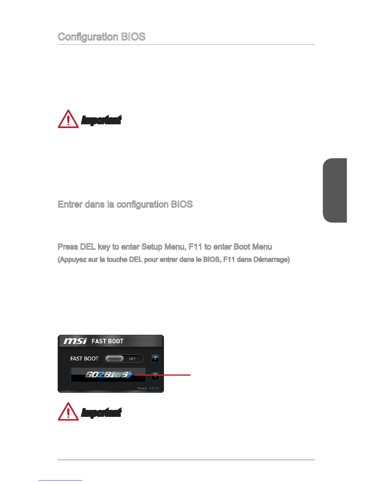 Veuillez vous assurer d’avoir installé l’utilitaire “MSI Fast Boot” avant d’utiliser le