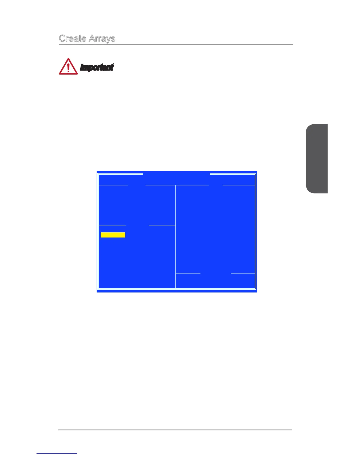 At the “Main Menu”, use the arrow keys to highlight “Create Array” and press