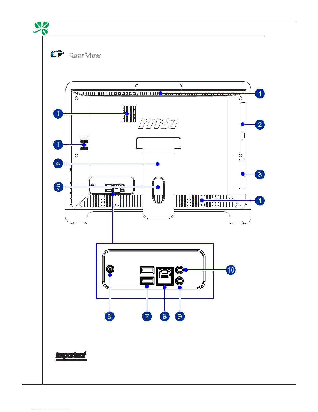 We suggest that you connect the AC/DC adapter to your AIO PC rst and then con-