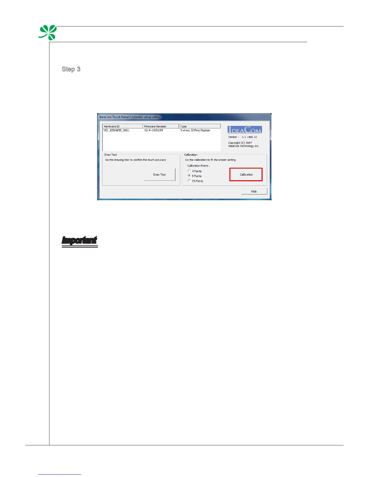 that users choose 9 points to adjust the touch panel. If users desire the best