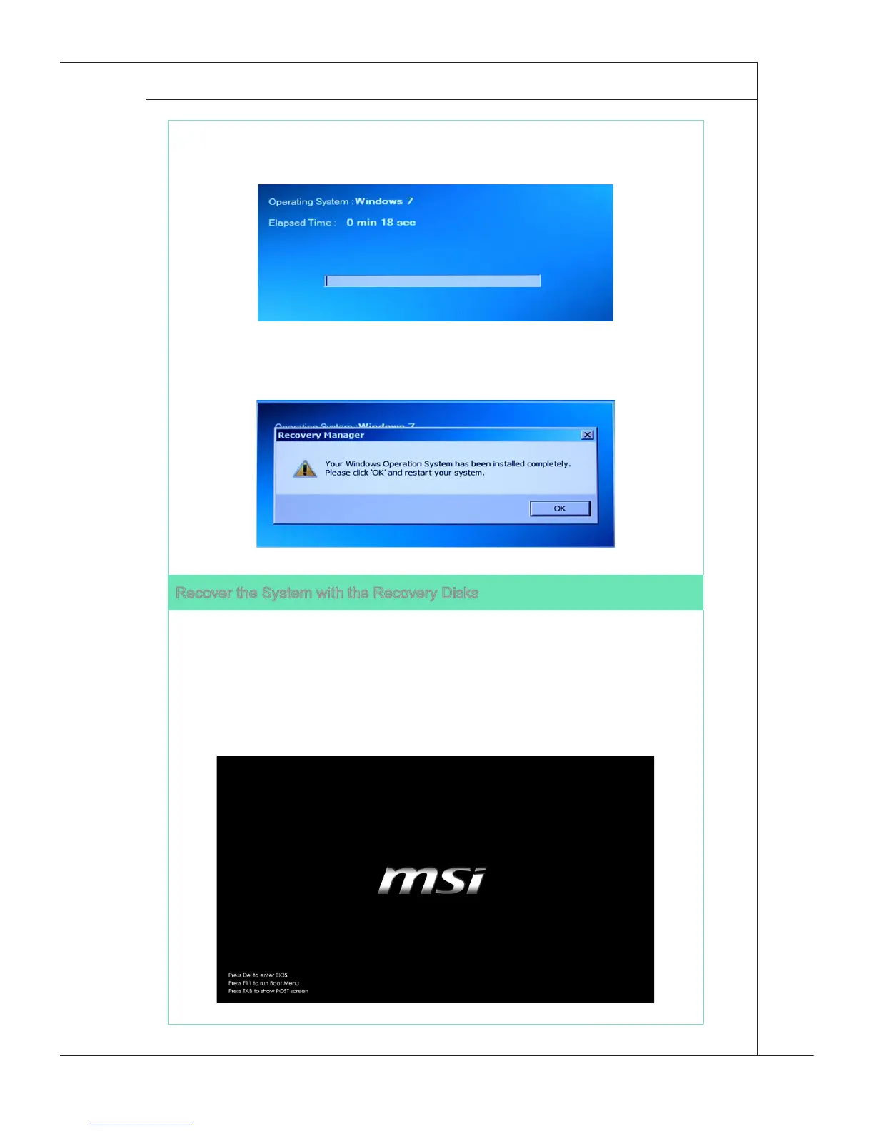 4. Select [MSI Recovery Manager] to start the System Recovery Function; or