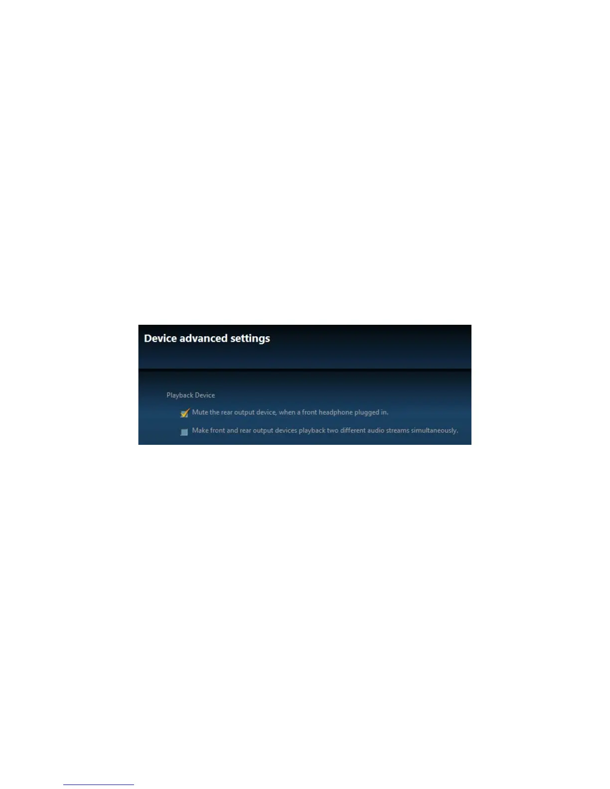 2. Select Mute the rear output device, when a front headphone plugged in.