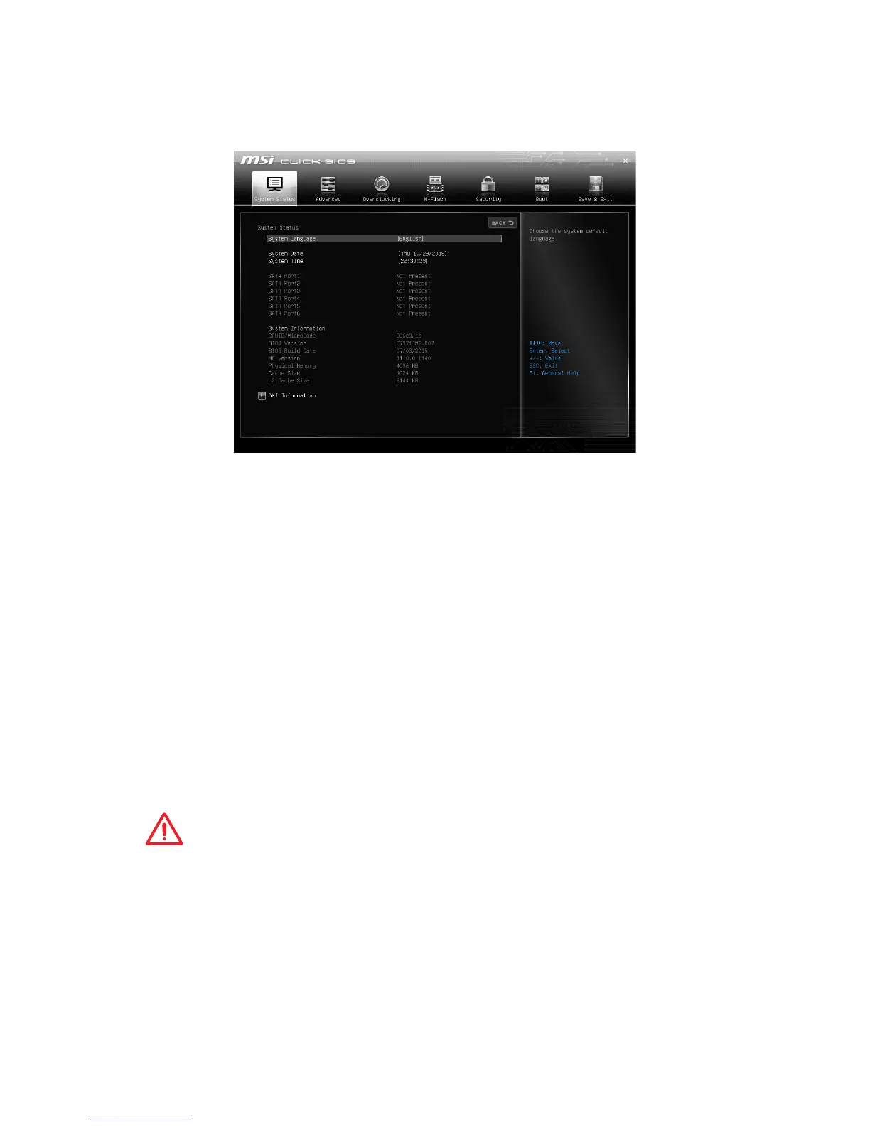After entering BIOS, the following screen is displayed. The System Status Menu