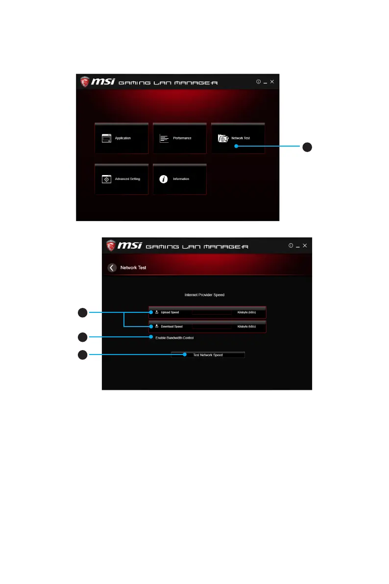 1. Click the Network Test block in GAMING LAN MANAGER.