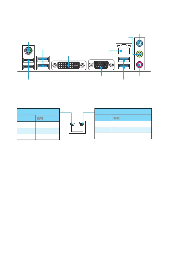 MSI B250M PRO OPT BOOST - 網路連接埠 Led 燈狀態表; 背板 I;O