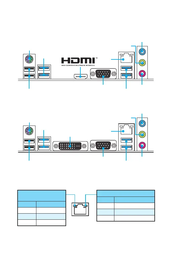 MSI B250MPRO-VD - Panneau Arrière Entrée; Sortie; B250 M Pro-Vh; B250 M Pro-VD; Tableau Explicatif de L État de la LED du Port LAN