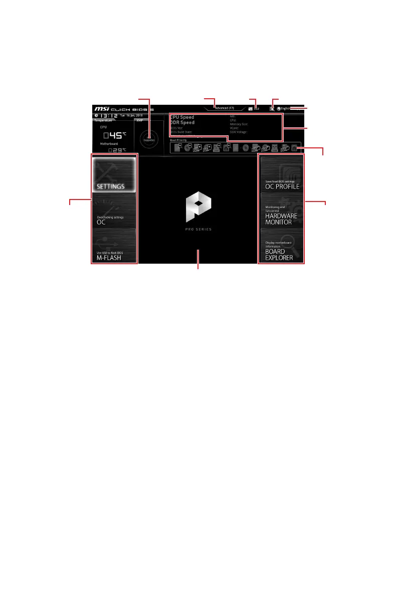 y Menu display - provides BIOS setting items and information to be configured.