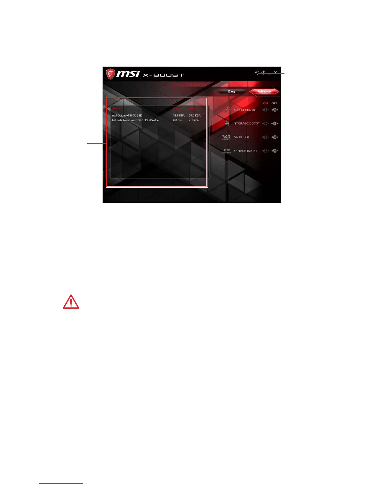 In Advance page, you can enable the USB SPEED UP, the STORAGE BOOST and VR