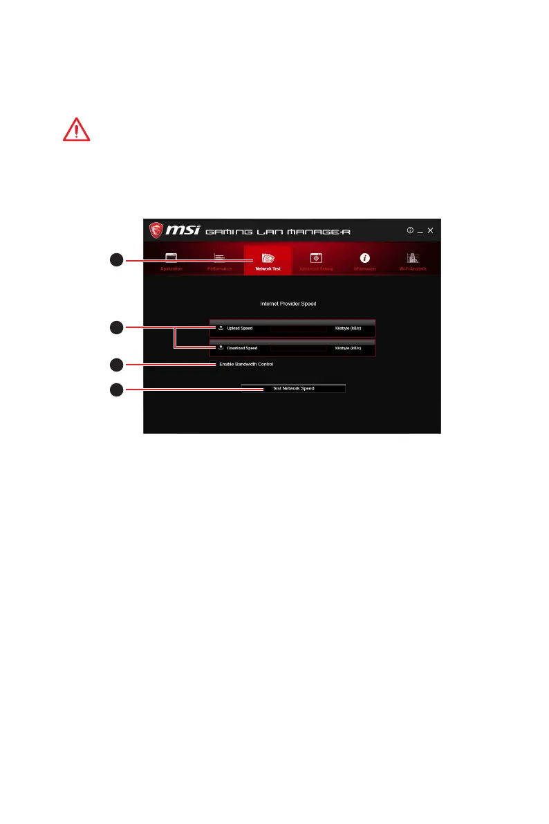 1. Click the Network Test block in GAMING LAN MANAGER.
