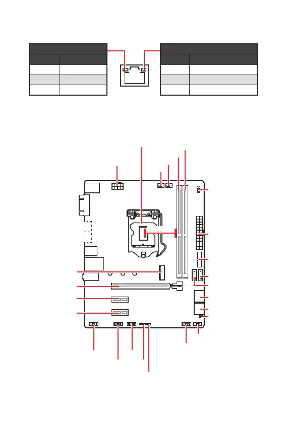 MSI B360M PRO-VD - LAN Port LED Zustandstabelle; Übersicht der Komponenten