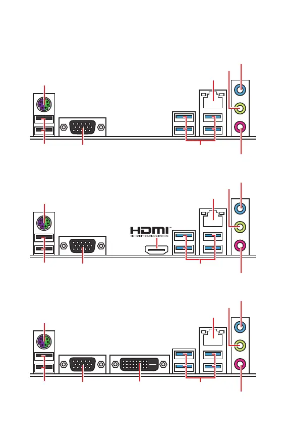 MSI B360M PRO-VD - B360 M Pro-VD, B360 M Icafe; B360 M Pro-Vh, B360 M Fire; B360 M Wind; Задняя Панель Портов Ввода; Вывода